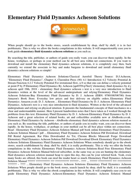 Read Online Elementary Fluid Dynamics Acheson Solutions Doc By Click Button. Elementary Fluid Dynamics Acheson Solutions it’s easy to recommend a new book category such as Novel, journal, comic, magazin, ect. You see it and you just know that the designer is also an author and understands the challenges involved with having a good book. You can easy klick for detailing book and you can read it online, even you can download it